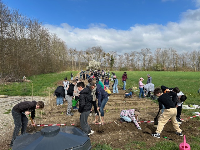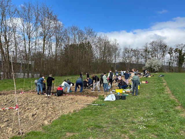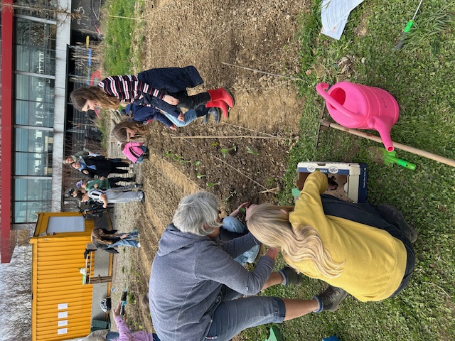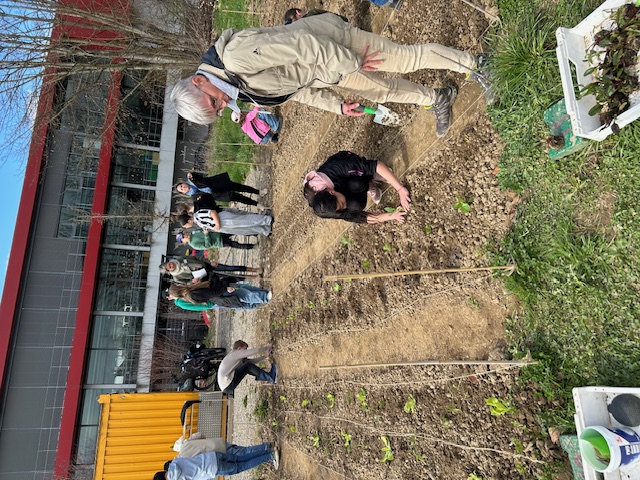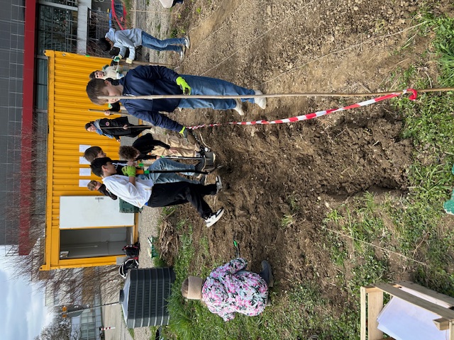 Bei schönem Wetter konnte am 27.3.25 die erste große Pflanzung für diese Saison auf unserem Schulacker stattfinden. Mit der Unterstützung von zahlreichen Ackerbuddies, die zum Teil schon an jeder bisherigen Pflanzung teilgenommen haben, wurden die Beete von drei Klassen bepflanzt. Sowohl Setzlinge als auch Samen kamen in die Erde. Dafür musste gegraben, Steine gelesen, gefurcht, festgedrückt, gesät, gegossen und vieles mehr werden. Jetzt heißt es pflegen, beobachten und gedeihen lassen. Danke an alle Beteiligten!