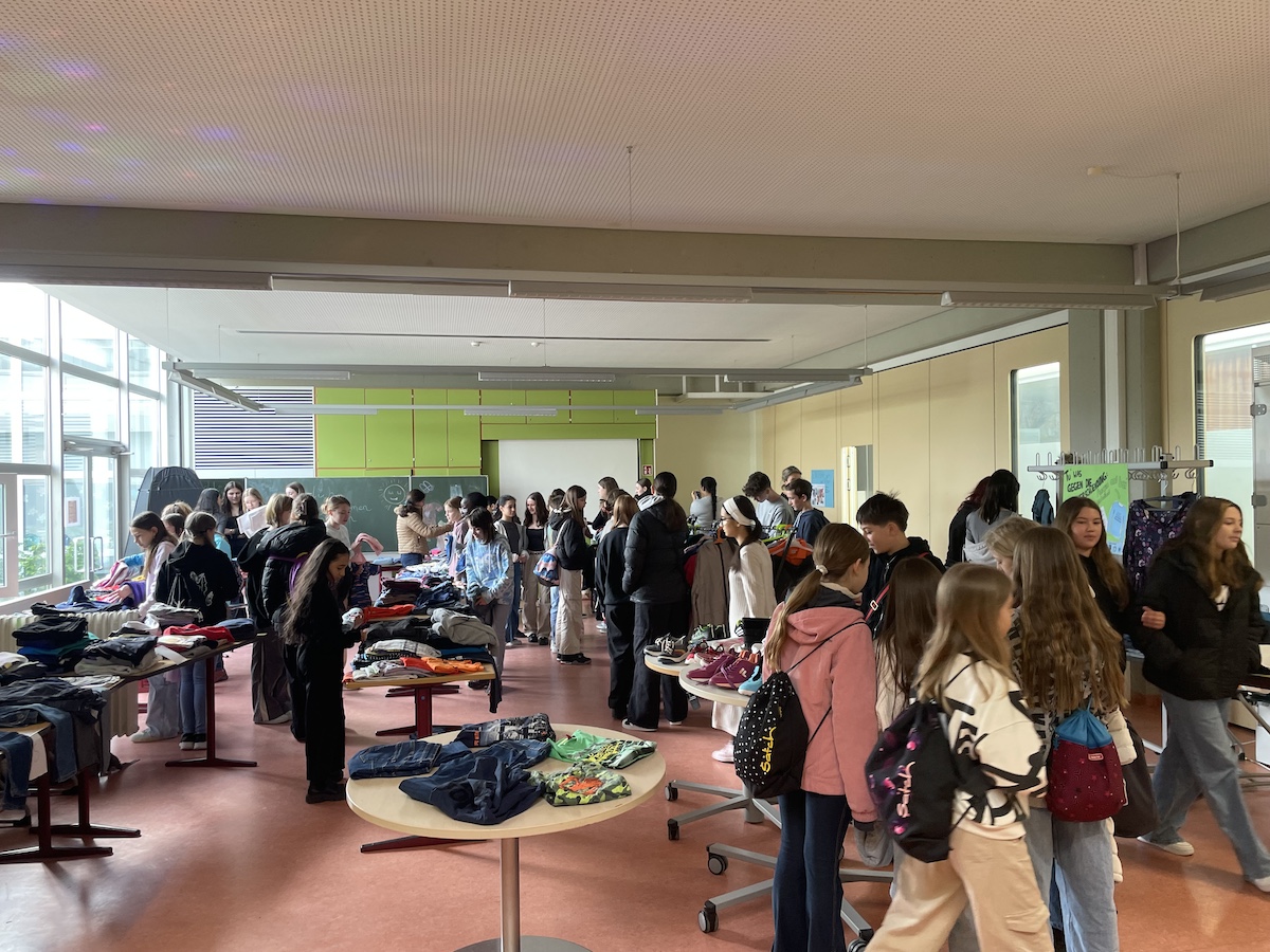 Die beiden Organisatorinnen Johanna Wenger und Nicola Vogel ziehen ein zufriedenes Fazit.: Wir hatten dieses Jahr noch mehr Kleiderspenden als im Herbst. Das Interesse war groß und der Raum war in allen vier Pausen gut besucht. Zu beobachten war ein überwiegend junges Publikum aus Fünft- und Sechstklässler sowie einigen wenigen älteren Schülern.
