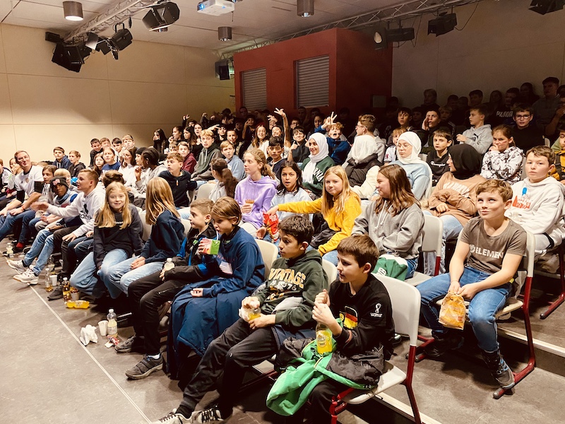 Es war eine unglaubliche Hau-Ruck-Aktion vom SMV-Team der Klassenstufe 8, um das erste Fußballspiel der deutschen Nationalmannschaft im großen Theaterstudio anbieten zu können. So mussten in kürzester Zeit Plakate entworfen, Eintrittskarten gestempelt, Schichtpläne erstellt, Einkäufe getätigt, Süßigkeiten verpackt und Finanzen verwaltet werden, um den knapp 140 Besuchern des school-viewings gerecht zu werden. Dass zwischendurch technische Probleme die Übertragung unterbrachen, störte die fußballbegeisterten Zuschauer nur unwesentlich. Größer hingegen war die Enttäuschung, dass das Spiel gegen Japan leider mit 1:2 verloren ging.