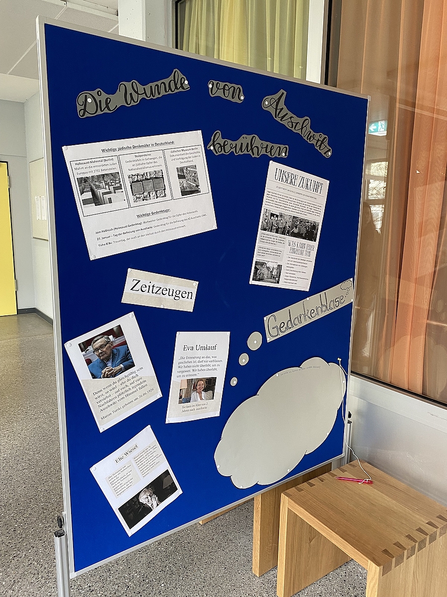 Wir haben unsere Erkenntnisse in Form einer Pinnwand zusammengefasst, die wir in der Schule aufgestellt haben. Dabei haben wir auch kreative Elemente eingebaut, wie z.B. eine Sprechblase um eigene Gedanken aufzuschreiben, Informationen und Bildern, um die Emotionen und die Schwere des Themas zu verdeutlichen.