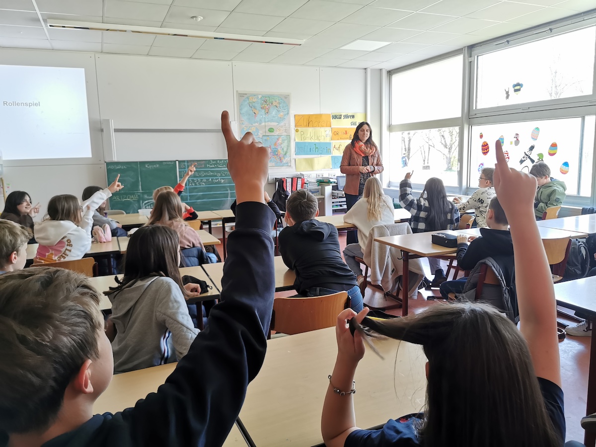 Frau Blenke vermittelte den Schülerinnen und Schülern die Folgen von Gewalt aus der Täter- und Opferperspektive. In interaktiven Rollentrainings erlernten die Schüler Methoden, um Gewaltsituationen von vornherein aus dem Weg zu gehen oder diese gewaltfrei zu lösen. Des Weiteren bot die Gewaltpräventionsveranstaltung Tipps, wie Kinder bzw. Jugendliche Opfern in Gewaltsituationen helfen können.