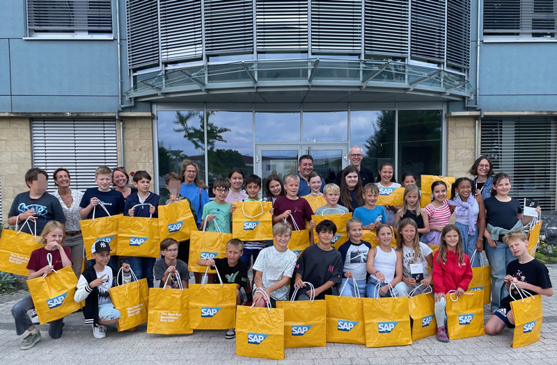 Am Freitag, den 11. Juli, hieß es für die Klasse 5d des Gymnasiums am BZM: raus aus dem Klassenzimmer und rein in die spannende Welt der Software! Gemeinsam mit ihren Lehrerinnen Frau Billenkamp, Frau Dowie und Frau Lenski besuchten die Schüler:innen die Firma SAP in Markdorf.