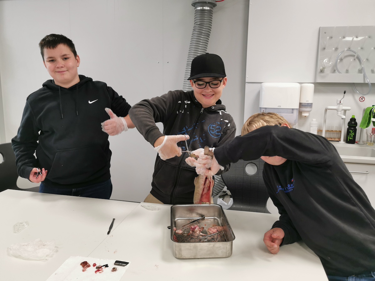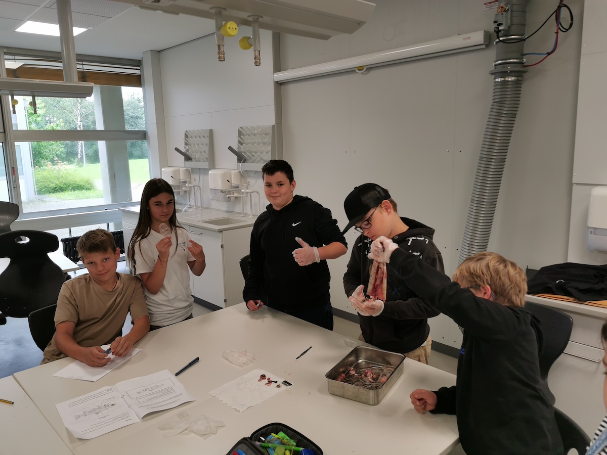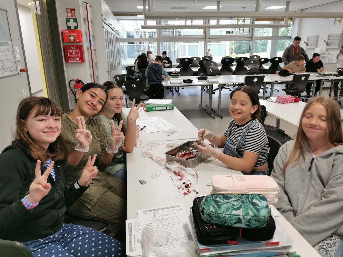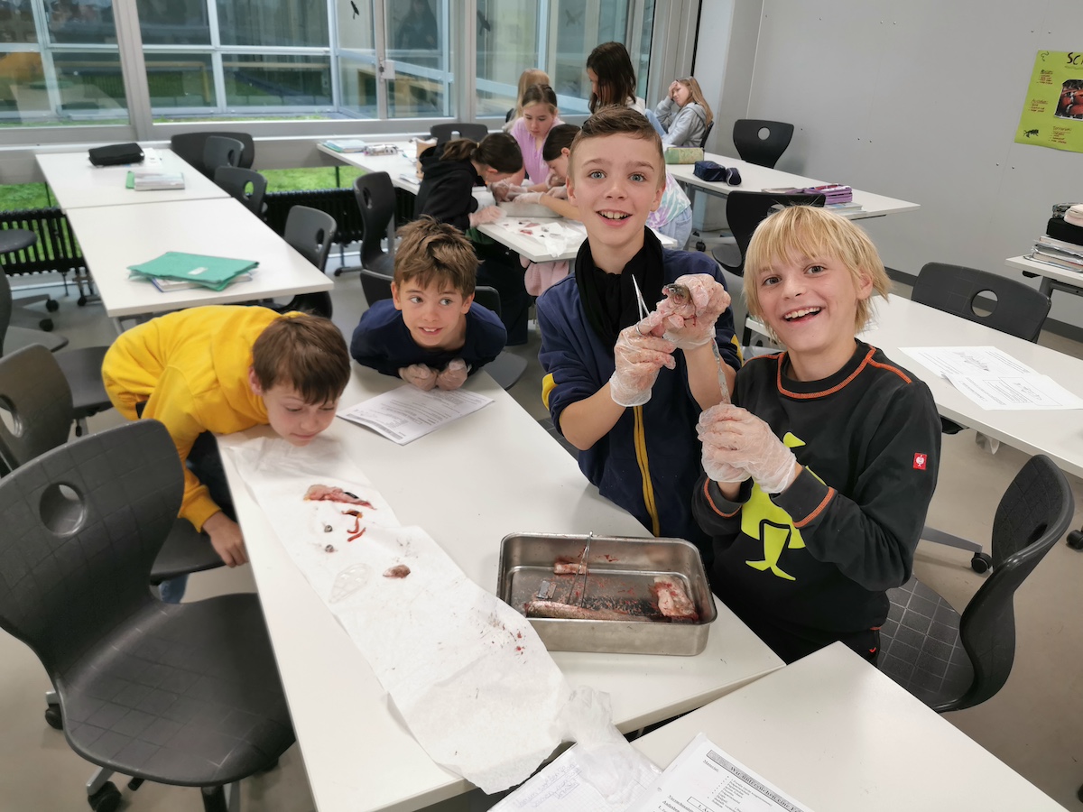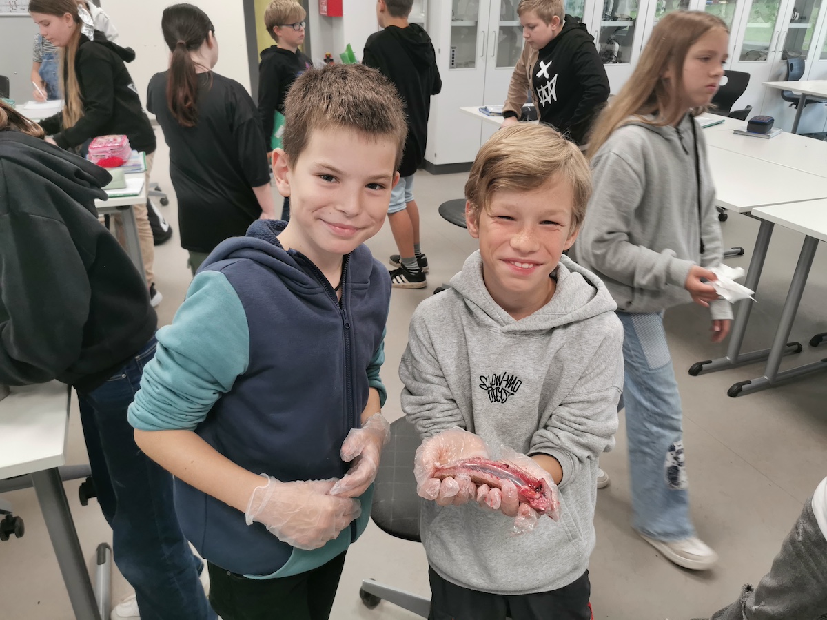Mit viel Spaß und hohem Interesse gingen die Schüler ans Werk und machten die eine oder andere Entdeckung, zum Beispiel, die durchsichtige Linse im Fischauge.