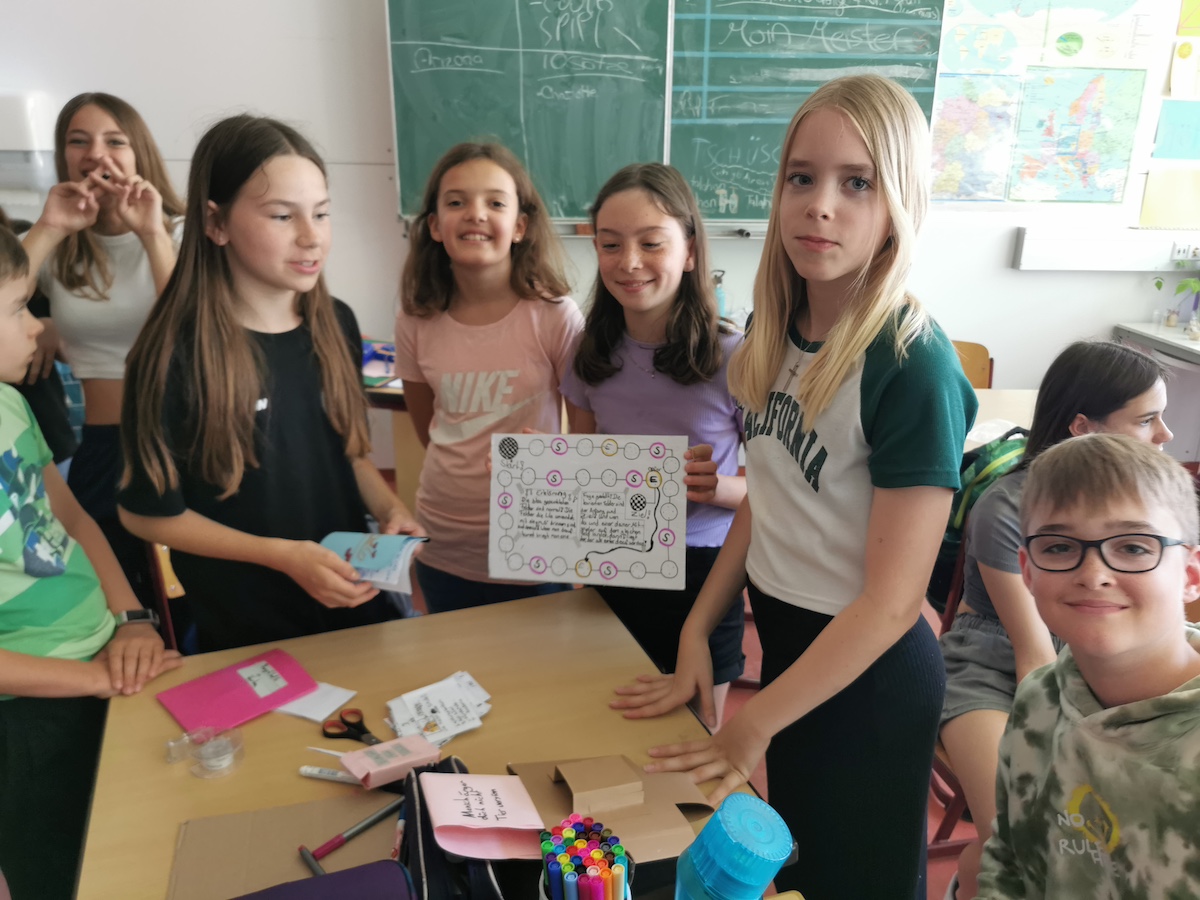 Die Klasse 5b hat während der diesjährigen Projekttage (16.-18.07.2024) zahlreiche Spiele erfunden. Herausgekommen sind richtig originelle Brett-, Karten- und Geschicklichkeitsspiele.