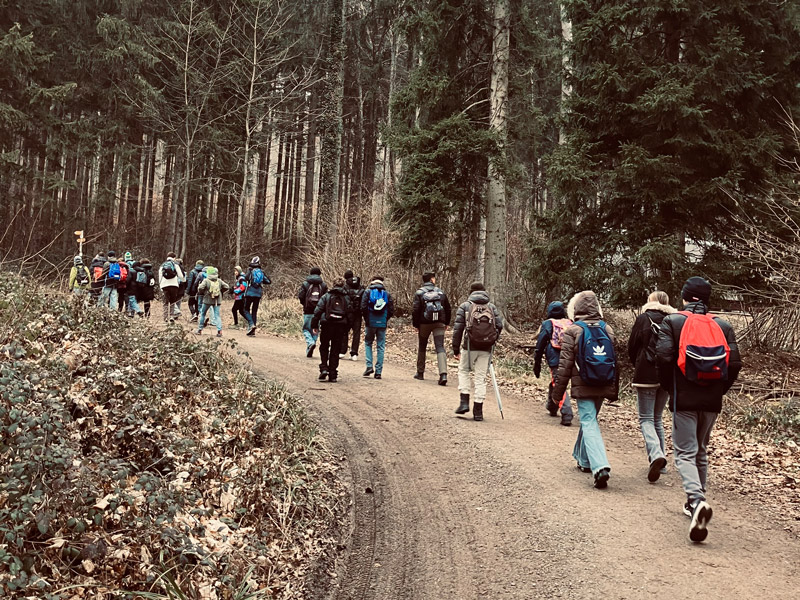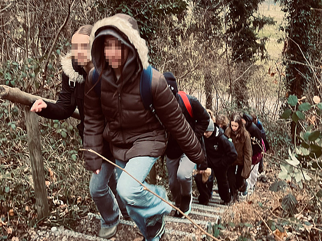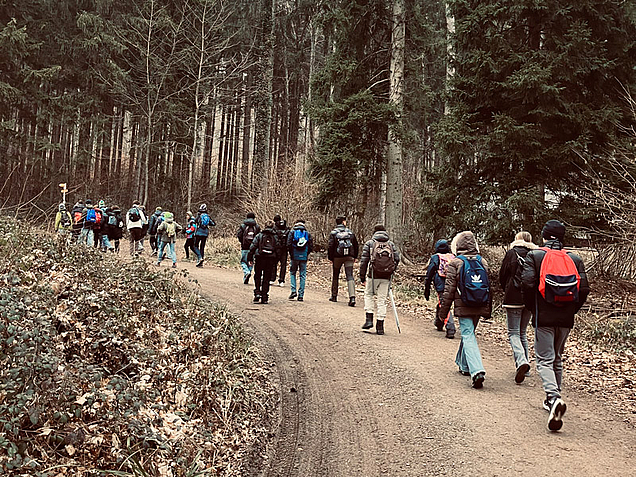 Obwohl der Wetterbericht Regen versprach, sind wir am Freitagmorgen zu unserer Wanderung in und um Markdorf losgezogen. Wir, das war eine große Gruppe Schülerinnen und Schüler in Begleitung von sechs Lehrkräften.
